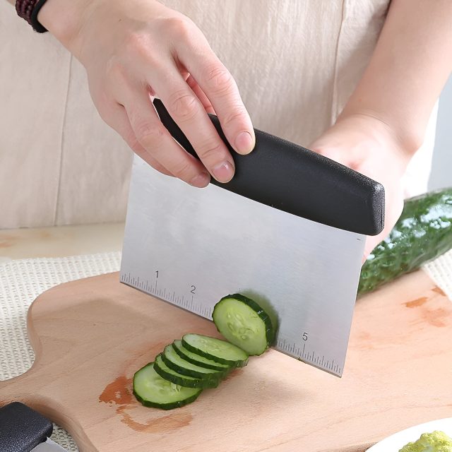 Stainless Steel Pastry & Dough Scraper with Measurement Scale – Non-Slip Handle
