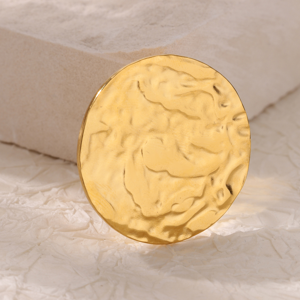 Elevate your style with this stunning Gold Stainless Steel Round Texture Open Ring, the perfect blend of modern elegance and timeless beauty. Designed to make a statement, this exquisite ring is crafted from high-quality stainless steel and coated with luxurious 18k gold plating, giving it a rich, sophisticated look. Its unique geometric texture adds an extra touch of charm, making it a standout accessory for any occasion.