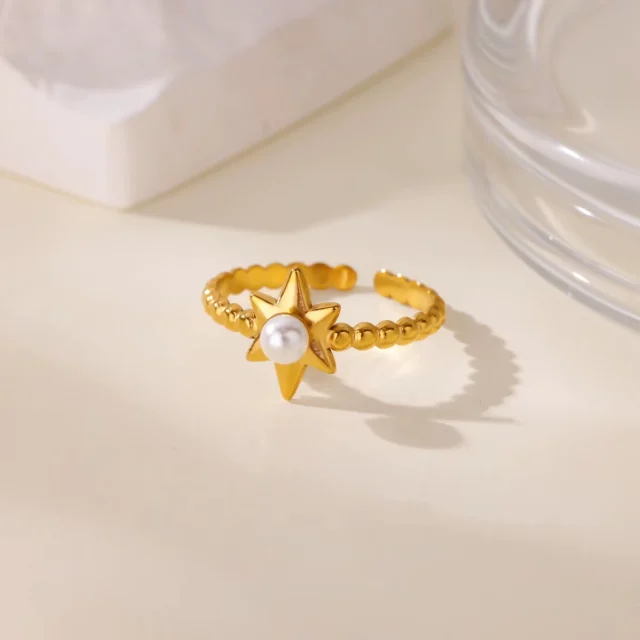 Don’t miss out on owning a piece of jewelry that combines elegance, style, and quality. Add this beautiful 18K gold-plated star & pearl ring to your collection today and shine on every occasion!
