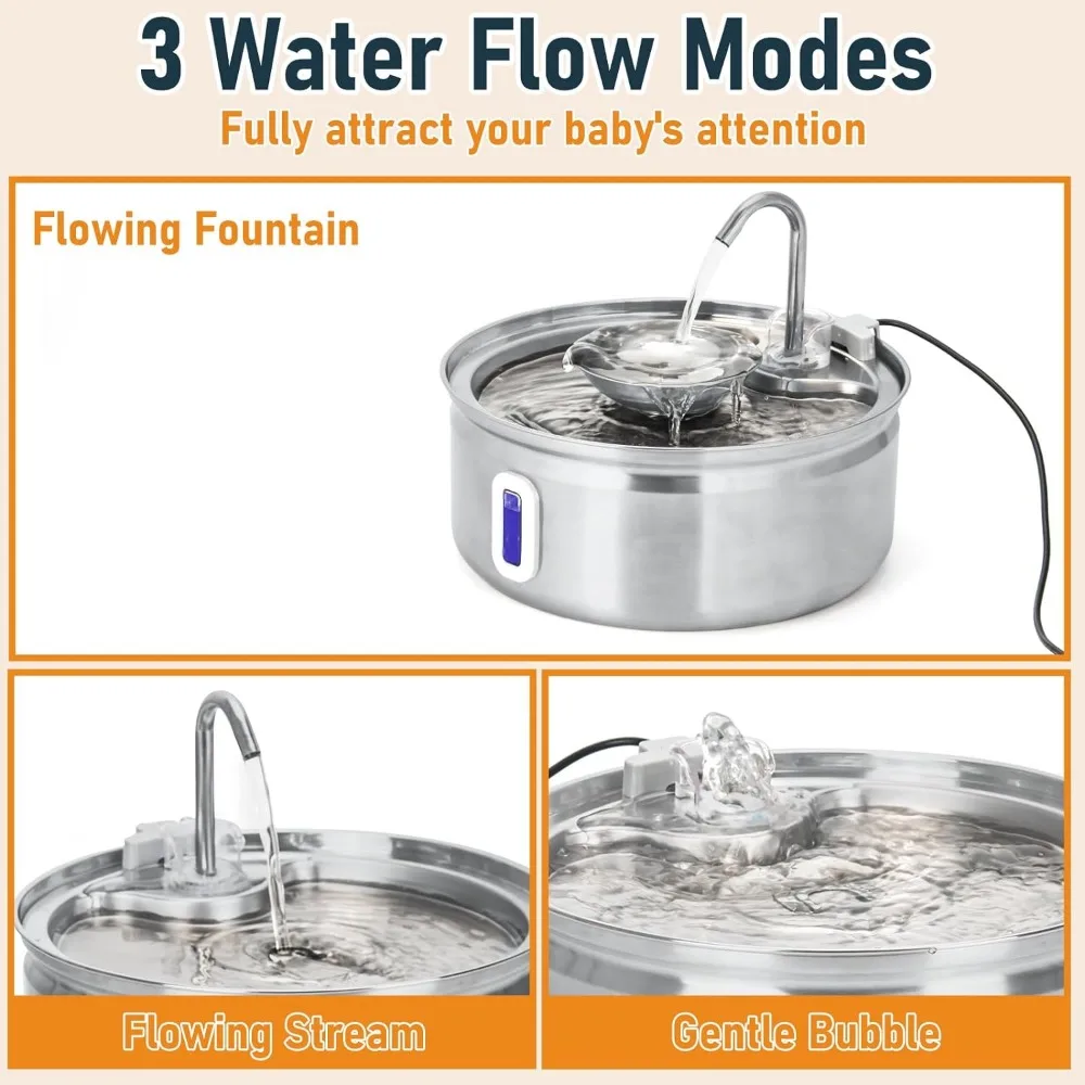 This fountain isn’t just functional — it’s thoughtfully designed with your pet’s well-being in mind. The 304 stainless steel build ensures durability and hygiene, while the clear water level window lets you easily monitor when it’s time to refill. The generous 108oz (3.2L) capacity provides enough fresh water for up to 8 days for an adult cat, making it ideal for busy owners or short trips away. With three customizable water flow styles — a gentle stream, bubbling flow, or smooth fountain — your pet stays engaged and happy while staying hydrated.