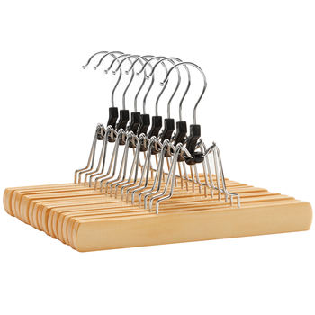 Premium Wooden Pants & Skirt Hangers with Non-Slip Felt Clamp, 12-Pack