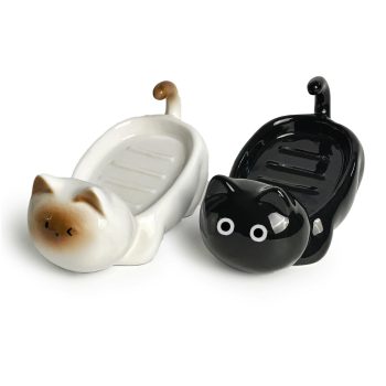 Cartoon Cat Ceramic Soap Dish with Drainage