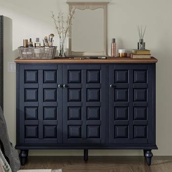 Retro 3-Door Plaid Storage Cabinet, Rustic Side Tabl