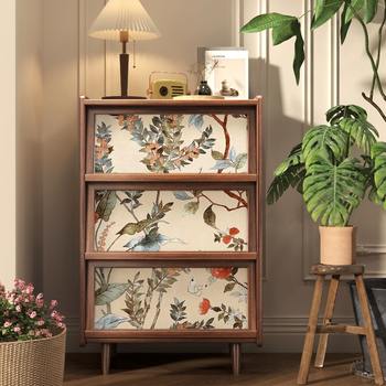 Vintage Carved Wood Accent Cabinet with Adjustable Shelves and 4 Doors