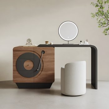 Modern Luxury Makeup Vanity Table with Mirror & Stool – Minimalist Wood Design