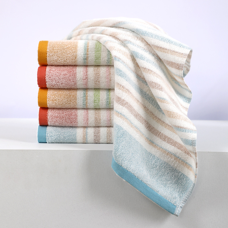 Each towel measures approximately 13 x 27 inches, making it the ideal size for face drying, hand use, or quick cleanups. The breathable cotton fibers absorb moisture efficiently while remaining lightweight and quick to dry. With a clean striped style and three soft, cheerful colors, this set adds a subtle decorative touch without overwhelming your space.
