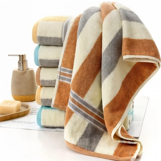 Soft Striped Cotton Face & Hand Towel, Quick-Dry, 16 x 35 in