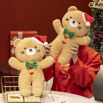 Cute Brown Bear Plush Toy – Adorable Gingerbread Doll for Christmas