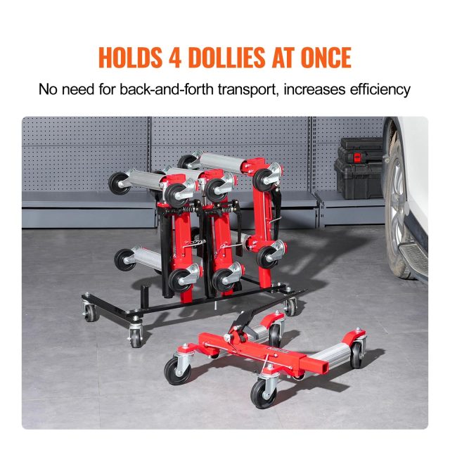 Heavy-Duty Car Dolly Storage Rack with 360° Swivel Casters, 4-Dolly Capacity