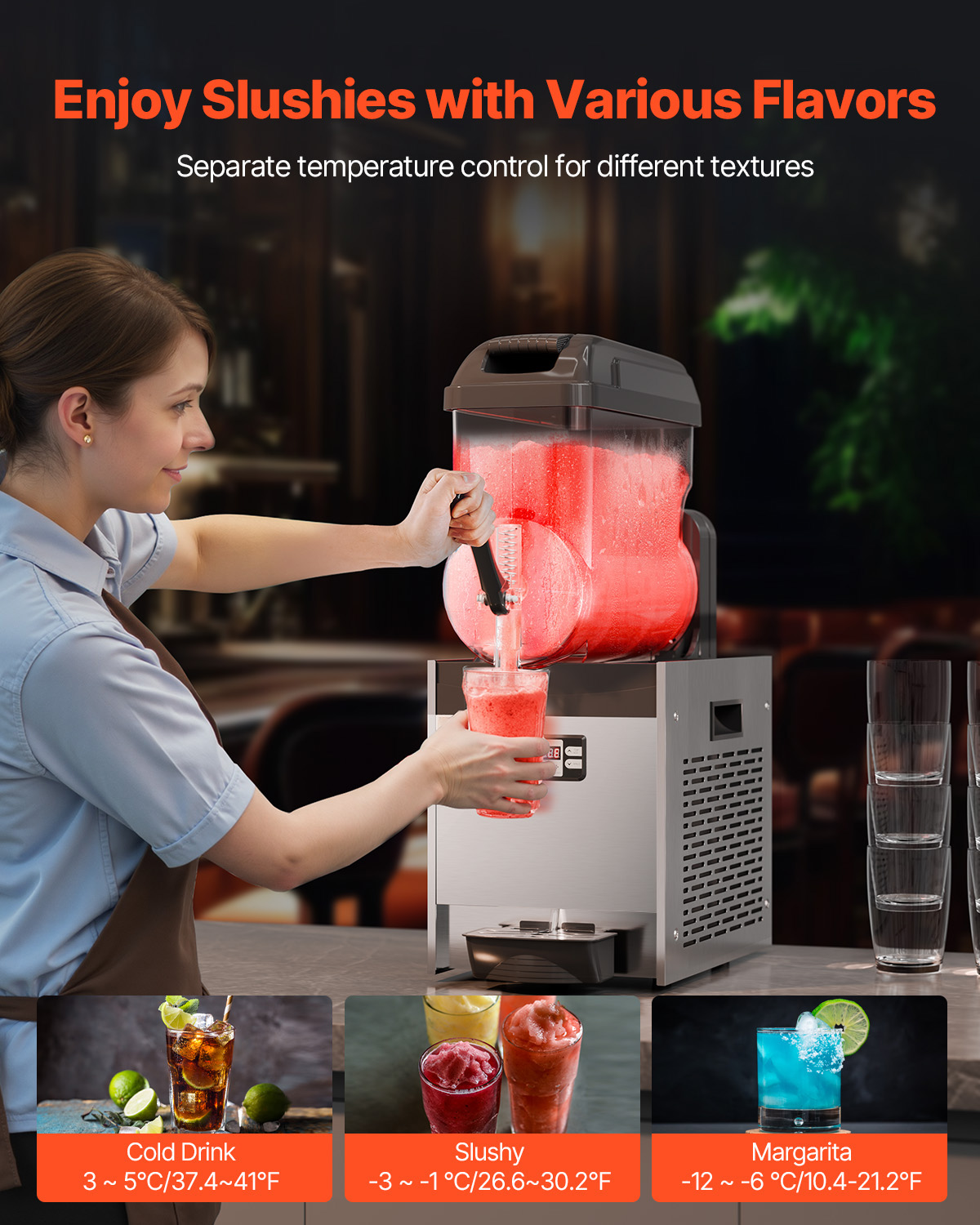 Enjoy endless creativity with your beverages. From tangy lemonades to frozen cocktails, this slushy machine transforms simple ingredients into delightful frozen treats that keep customers coming back for more. Get ready to cool down your menu and turn every moment into a frosty celebration. Start serving smiles—one cup at a time!