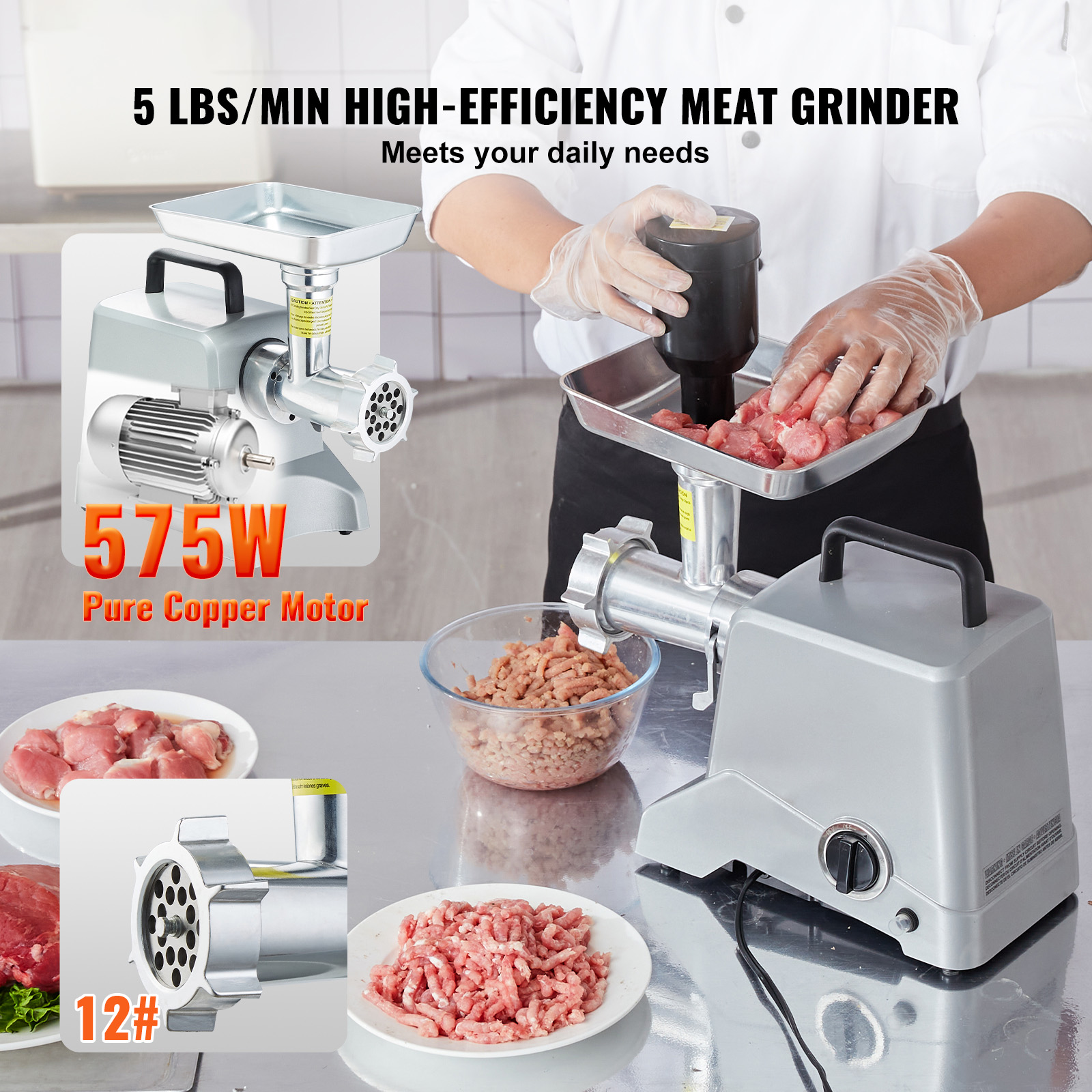 Take your home cooking to the next level with this Electric Meat Grinder that delivers unbeatable power, precision, and performance. With a robust 575W rated motor (800W max output), it effortlessly grinds up to 5 pounds of meat per minute—perfect for preparing fresh, healthy meals for your family or hosting large gatherings. Whether you’re mincing beef, pork, chicken, or even preparing your own sausages, this machine gives you total control over your ingredients.