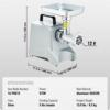 Crafted with a durable aluminum body and food-grade attachments, this grinder ensures safe and hygienic food processing. The high-quality stainless steel blade and cutting plates provide consistent, fine, or coarse results. Its anti-backloading setting and reverse function prevent clogging, while the top handle allows for easy portability. Designed for convenience, this machine operates continuously for over 30 minutes with low noise and high efficiency.