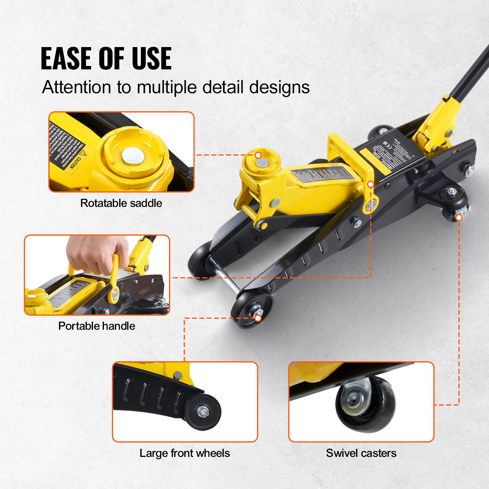 Low Profile 2 Ton Hydraulic Floor Jack with Heavy-Duty Jack Stands