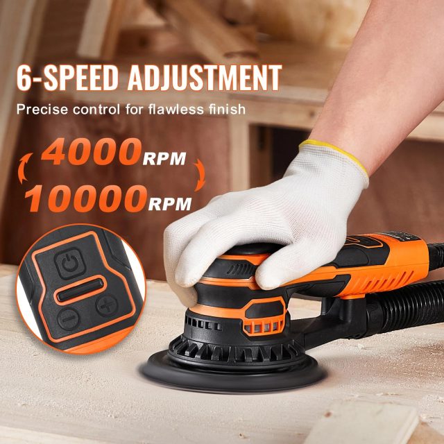 Not every project requires the same speed or intensity, and that’s where this sander truly shines. Featuring 6 variable speed settings (from 4,000 to 10,000 RPM), it adapts easily to delicate polishing or aggressive material removal. From woodworking and wall preparation to auto body detailing and paint finishing, this tool gives you total control and precision.
