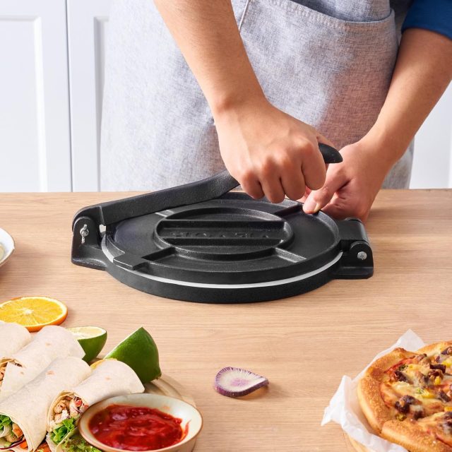 This press is ideal for those who love making flour tortillas, pancakes, pizzas, pita bread, and flatbreads. Whether you’re cooking for your family or serving up fresh tortillas in a café, this tool guarantees precision and consistency every time you press. Ready to use right out of the box — no assembly required — it’s perfect for both beginners and seasoned home cooks.