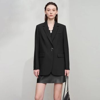 Notched Lapel Shoulder Pad Blazer for Women – Autumn/Winter Fashion Jacket