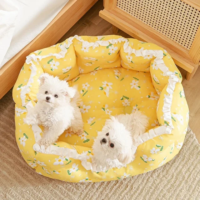 Thoughtfully crafted from soft cloth and premium cotton, this bed provides gentle support while keeping your pet snug and secure. Its charming house-like design adds a cute accent to any room while giving pets the privacy they naturally crave. Choose from four cheerful colors – Yellow, Gray, Pink, or whimsical Rainbow Stars – and three blanket sizes to match your pet’s size and style.