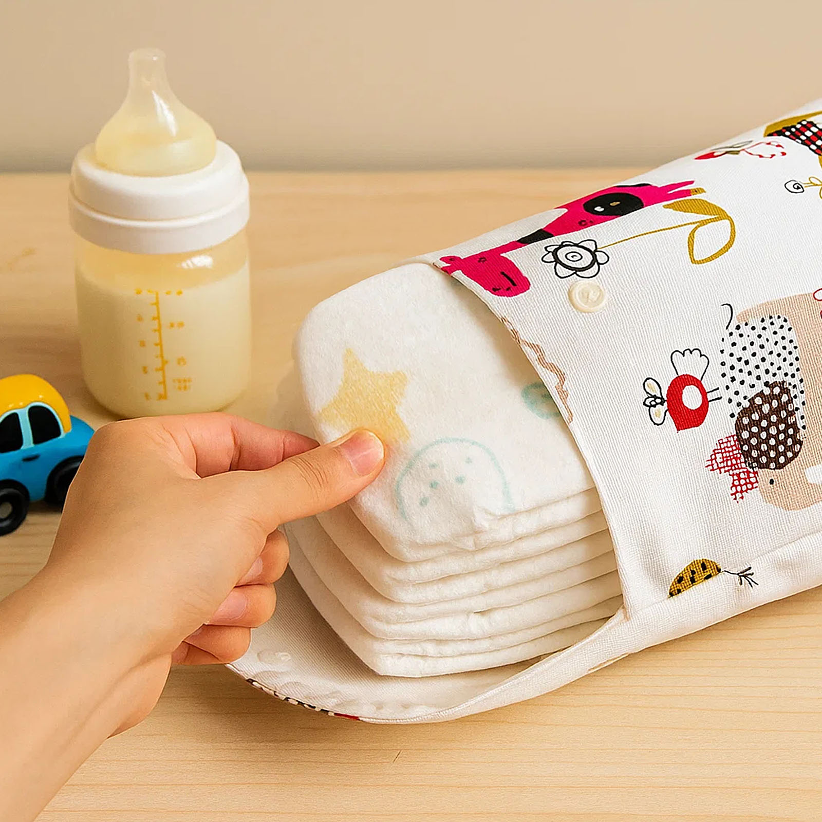 What truly sets this pouch apart is how thoughtfully it’s made for real parents. The durable polyester material is easy to clean, soft to the touch, and strong enough for daily use. Its slim yet roomy design fits easily into backpacks, strollers, or handbags without adding bulk. Cute animal patterns add a cheerful touch that feels modern and playful, perfect for both moms and dads.