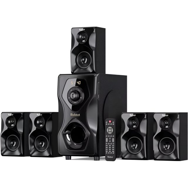 This 700W Surround Sound Speakers Home Theater System is built for those who crave exceptional audio quality and deep bass. Whether you’re setting up for a home theater, gaming station, or music setup, this system adapts to your needs. The system’s wired connections ensure stable, high-quality sound while its Bluetooth 5.0 technology provides the option for wireless convenience.