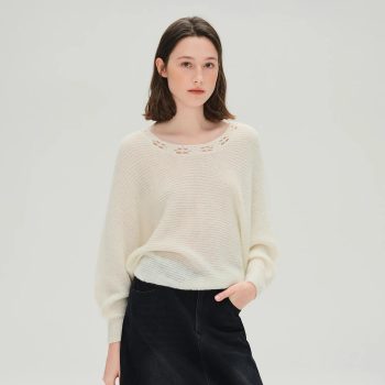 Plus Size Cloud Knit Crochet Sweater with Cut-Out Detail