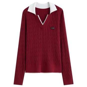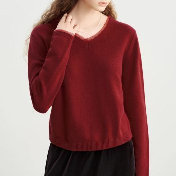 Petite Red V-Neck Lace Knit Sweater for Women – Korean Style Loose Fit