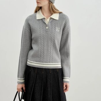 Petite French Vintage Bow Knit Sweater – Soft Autumn Winter Pullover