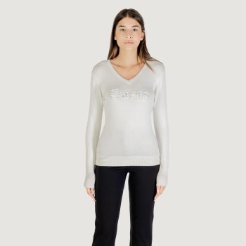 Guess Women’s White V-Neck Rhinestone Knit Sweater