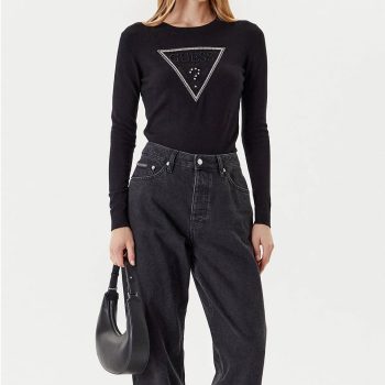 Guess Women’s Blue V-Neck Rhinestone Knit Sweater