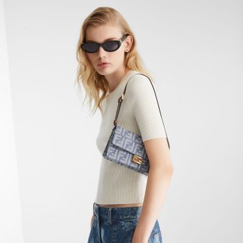Versace Chenille Long Sleeve Top with Medusa Studs