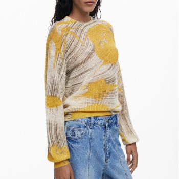 Desigual Women’s Beige V-Neck Knitwear Sweater