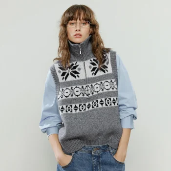Women’s Winter Sweater Vest Sleeveless Fair Isle Knit Gilet