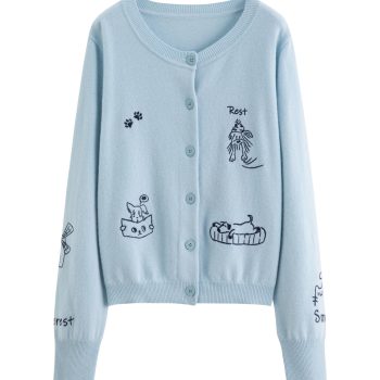 Plus Size Pet Embroidery Wool Knit Cardigan