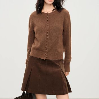 Retro Round-Neck Wool Blend Knit Coatigan for Women