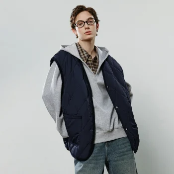 Women’s Winter Asymmetric Argyle Color-Block Cotton Vest Jacket