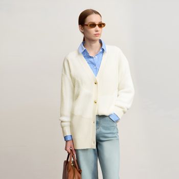 Women’s Casual Wool Blend Cardigan O-Neck Button Front