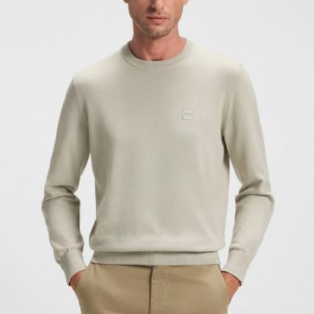 Boss Men’s Beige Knitwear – 100% Cotton Round Neck Sweater