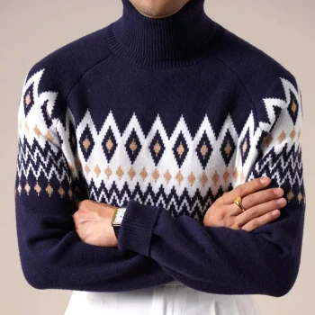 Men’s Winter Plaid Wool Blend Turtleneck Sweater