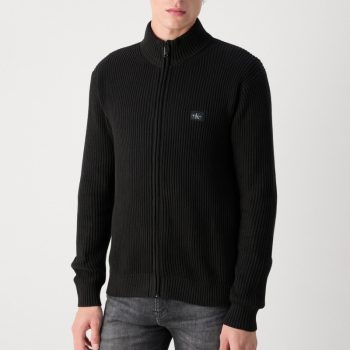 Calvin Klein Jeans Men’s Black Cotton Turtleneck Zip Knitwear