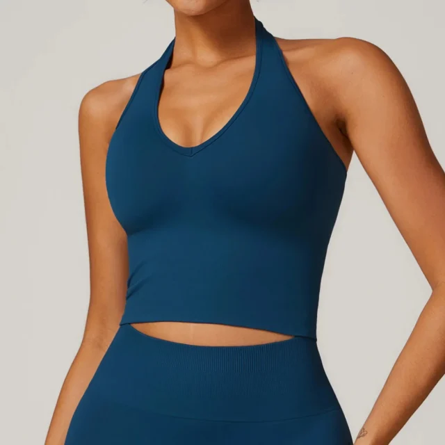 The breathable knit fabric feels lightweight and gentle on skin, while its quick-dry feature keeps sweat under control during even the toughest workouts. Its super-elastic construction molds to your shape, giving you confidence through deep stretches, jumps and bends. With a flattering deep-V neckline and smooth, seamless finish, it’s not only functional—it’s stylish enough to wear as a crop top on its own.