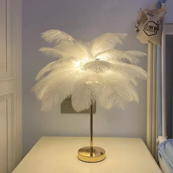 Rechargeable Ostrich Feather Table Lamp – Romantic Nordic LED Night Light