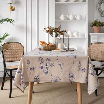 Honeybee Floral Cotton Linen Rectangle Tablecloth for Dining & Decor