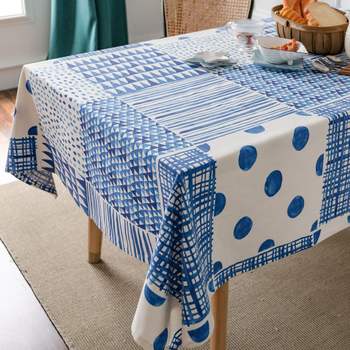 Bohemian Blue Geometric Cotton Linen Tablecloth – Simple Chic Home Décor