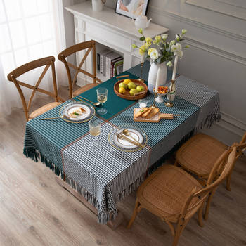 Modern Geometric Jacquard Tablecloth with Tassels – Elegant Dining & Sofa Cover
