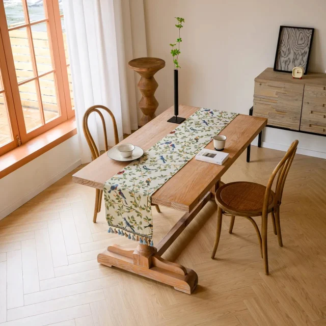 Made from a durable polyester-cotton blend, this table runner combines the softness of cotton with the strength of polyester. The woven jacquard texture gives it depth and visual interest, while decorative tassels at each end add a handcrafted Nordic touch. The fabric is yarn-dyed, helping the colors stay vibrant while maintaining a comfortable, natural feel. Available in multiple length options in inches, it fits a wide range of table sizes with ease.