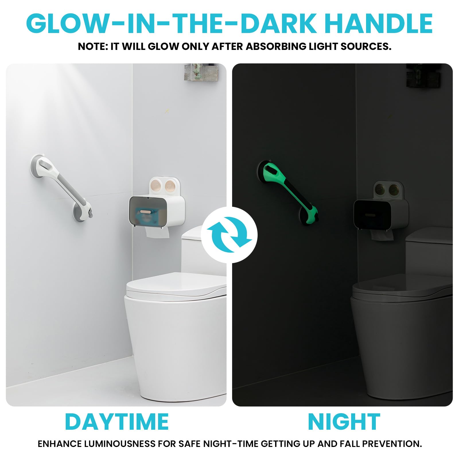 Each handle features a textured anti-slip strip and curved wave design that fits naturally in your hand, offering strong friction and double protection against slipping. Crafted to support up to 240 lbs, these waterproof grab bars stay sturdy and reliable, giving you the peace of mind you deserve. The glow-in-the-dark material illuminates at night, providing extra safety and visibility even in low-light conditions.