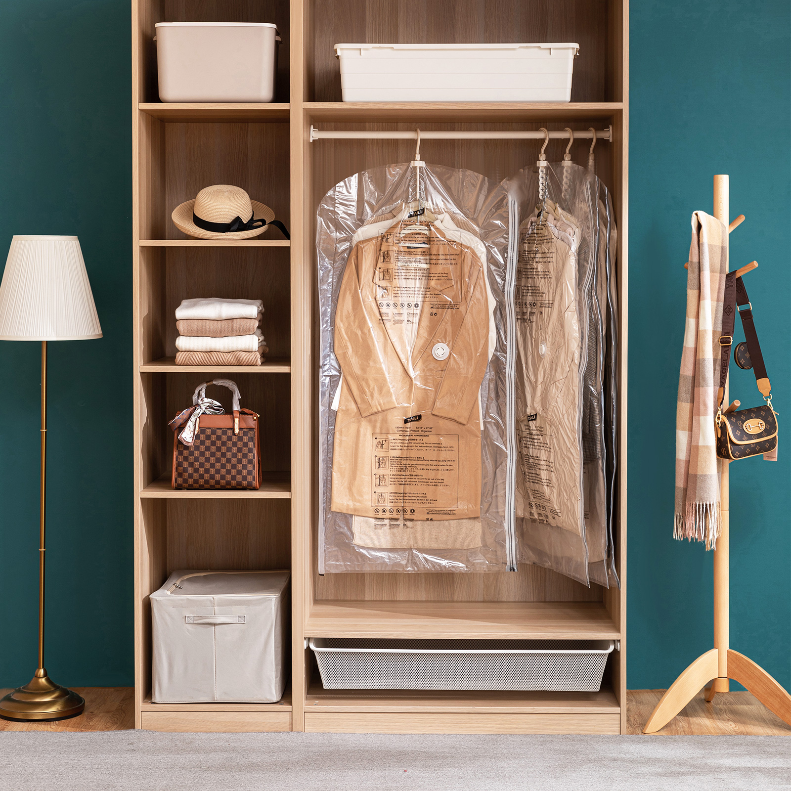 Our hanging vacuum bags are made from high-quality, five-layer PA+PE material, ensuring that your clothes are protected from dust, moisture, and wrinkles. By utilizing vertical storage, these bags help minimize creasing and deformities, allowing your clothes to maintain their original shape and freshness year-round. Enjoy a robust double color-changing zipper that ensures a tight seal, giving you peace of mind that your items are securely stored.