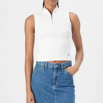 Calvin Klein Jeans Women’s White Sleeveless Turtleneck Top with Zip