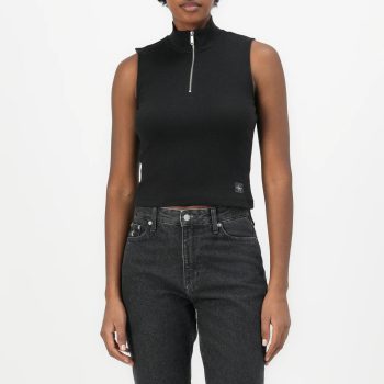 Calvin Klein Jeans Women’s Black Sleeveless Turtleneck Zip Top