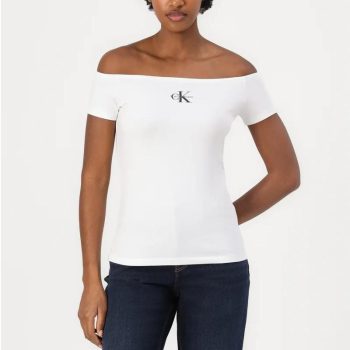 Calvin Klein Jeans Women’s White Boat Neck T-Shirt