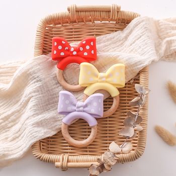 Wooden Baby Teether & Rattle Toy with Silicone Ring